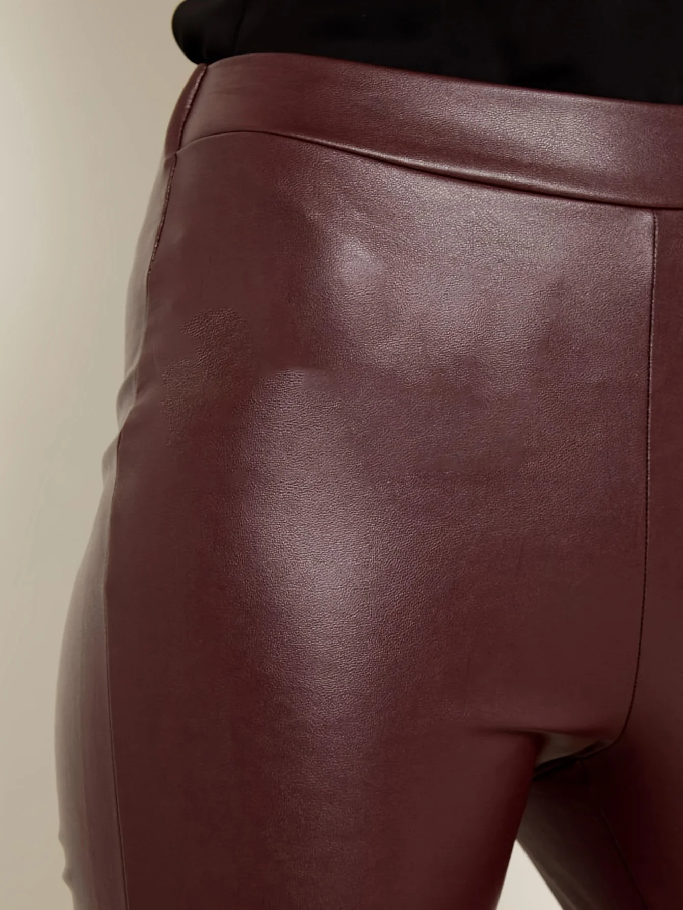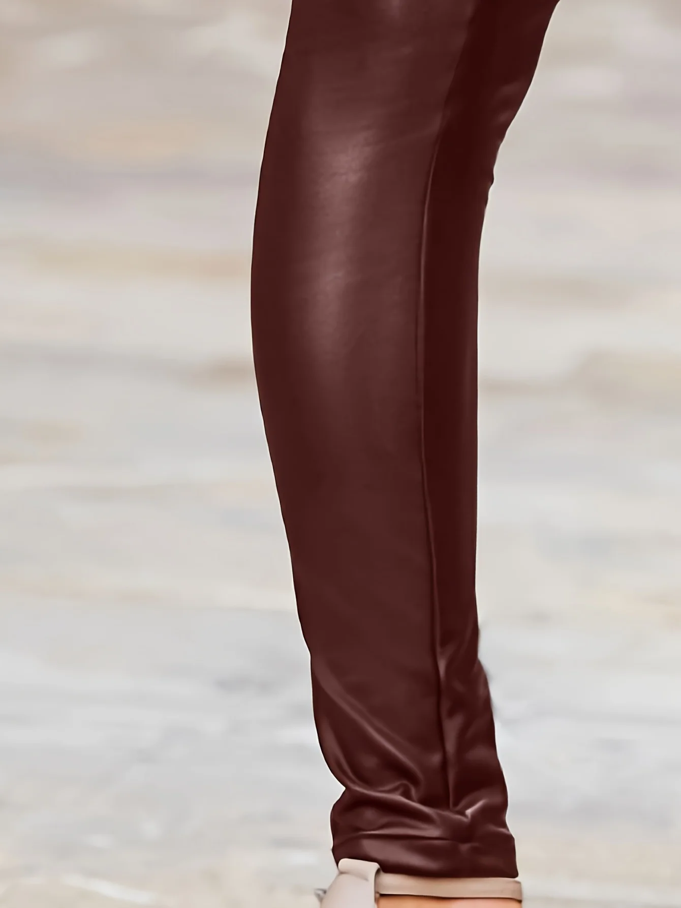 Burgundy Regular Fit Casual Summer Tights Multifunctional High Waist PU Pure Environmentally Friendly Artificial Leather Full